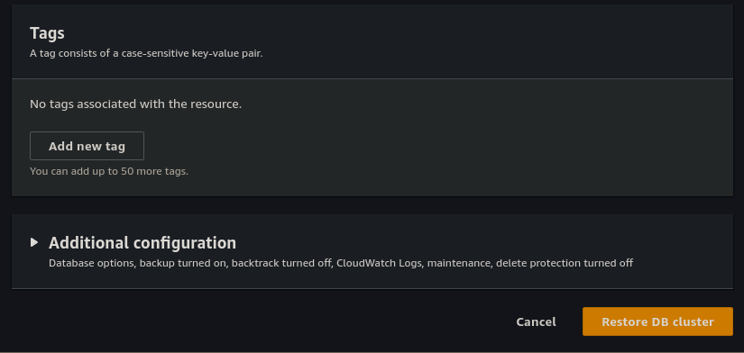 We can leave the other settings as default and then click Restore DB Cluster